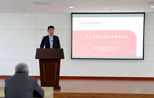 3月12日下午,在全國兩會勝利閉幕后,恒銀科技第一時間召開學習貫徹全國兩會精神宣講會,全國政協委員,公司黨委書記、董事長江浩然宣講全國兩會精神。會議由黨委副書記梁曉剛主持,公司領導班子成員、在津總部中層管理人員等參加。